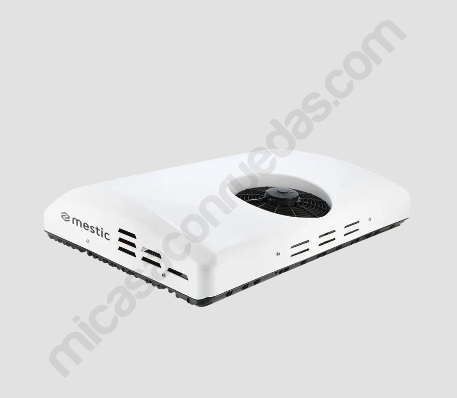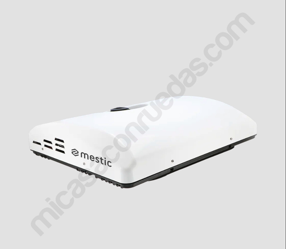 El aire acondicionado Mestic RTA-2000 funciona a 12V y ha sido diseñado especialmente para su uso en campers, furgonetas, caravanas y autocaravanas. Su diseño compacto lo hace fácil de instalar en múltiples configuraciones y su tecnología permite enfriar el interior del vehículo de forma eficiente sin necesidad de conexión a 230V.