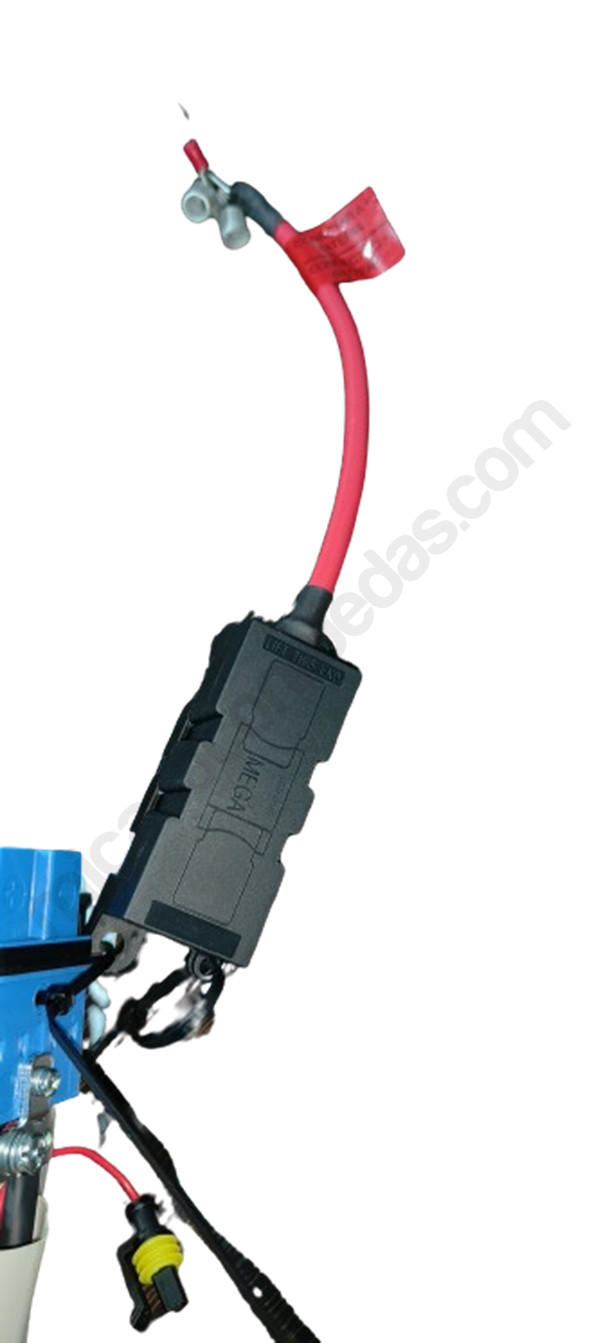 El kit incluye fusible de 100 A con portafusibles, proporcionando una protección esencial frente a sobrecargas o picos de tensión. Además, incorpora un cable de señal de baterías, fundamental para el control del sistema y la protección de la instalación eléctrica.